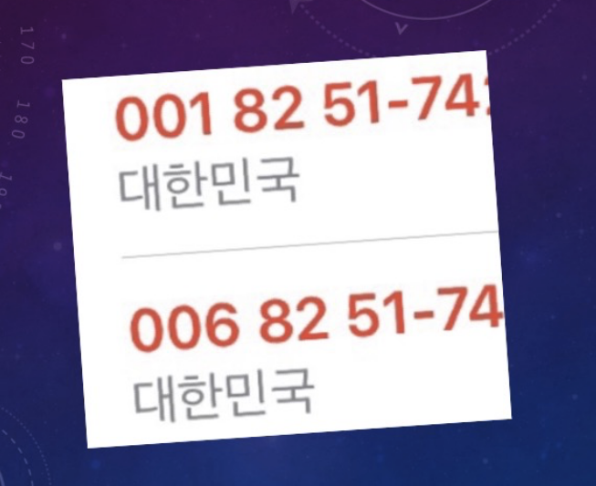 위에서도 언급을 하였지만 앞의 세자리는 통신사, 뒤의 두자리는 국가번호라고 했습니다. 001는 KT를 의미하고 82는 한국을 의미합니다. 이러한 번호로 전화가 오는것은 정상적이지 않다고 봐야할것 같아요.