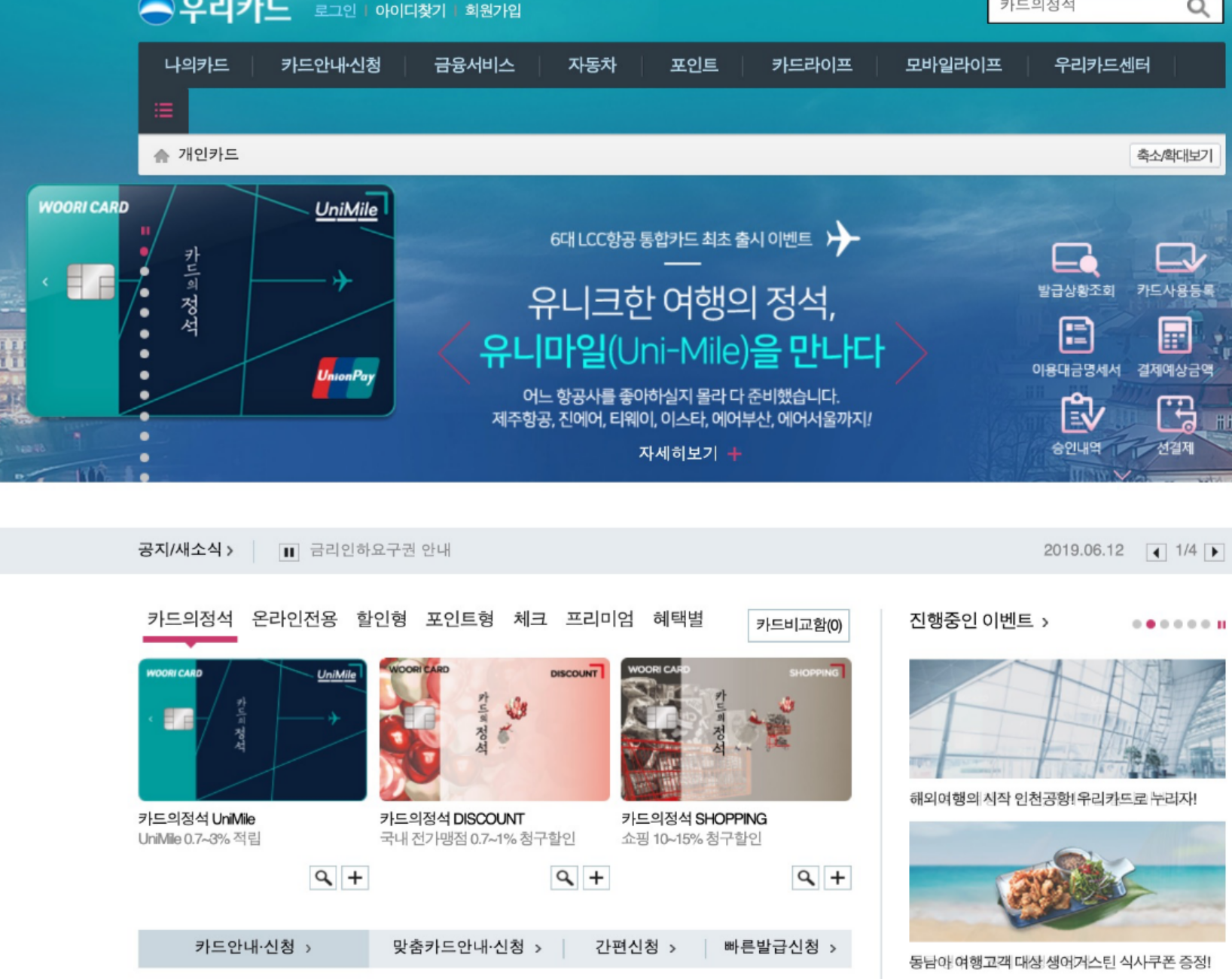 우리카드는 우리은행을 이용하는 상당수의 사람들이 자연스럽게 쓰게 되는 카드인것 같습니다. 저같은 경우에는 우리은행을 이용하지 않기 때문에 우리카드를 이용하지는 않지만 와이프의 경우에는 우리은행 고객이기 때문에 우리카드를 이용합니다.